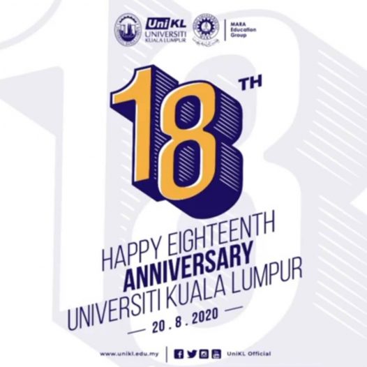 In conjunction with “Sambutan Hari UniKL 2020” , all UniKL MIMET Staff are invited to the celebration of 18TH UniKL anniversary via video conference and TEAMS which will be conducted simultaneously throughout all UniKL campuses. HAPPY 18TH ANNIVERSARY UNIVERSITI KUALA LUMPUR!